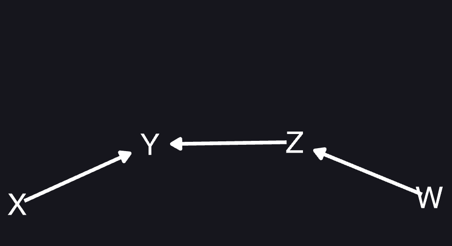 no info about the relationship between \(X\) and \(Y\). Either \(X \rightarrow Y\), \(X \leftarrow Y\) or \(X\leftrightarrow Y\). |